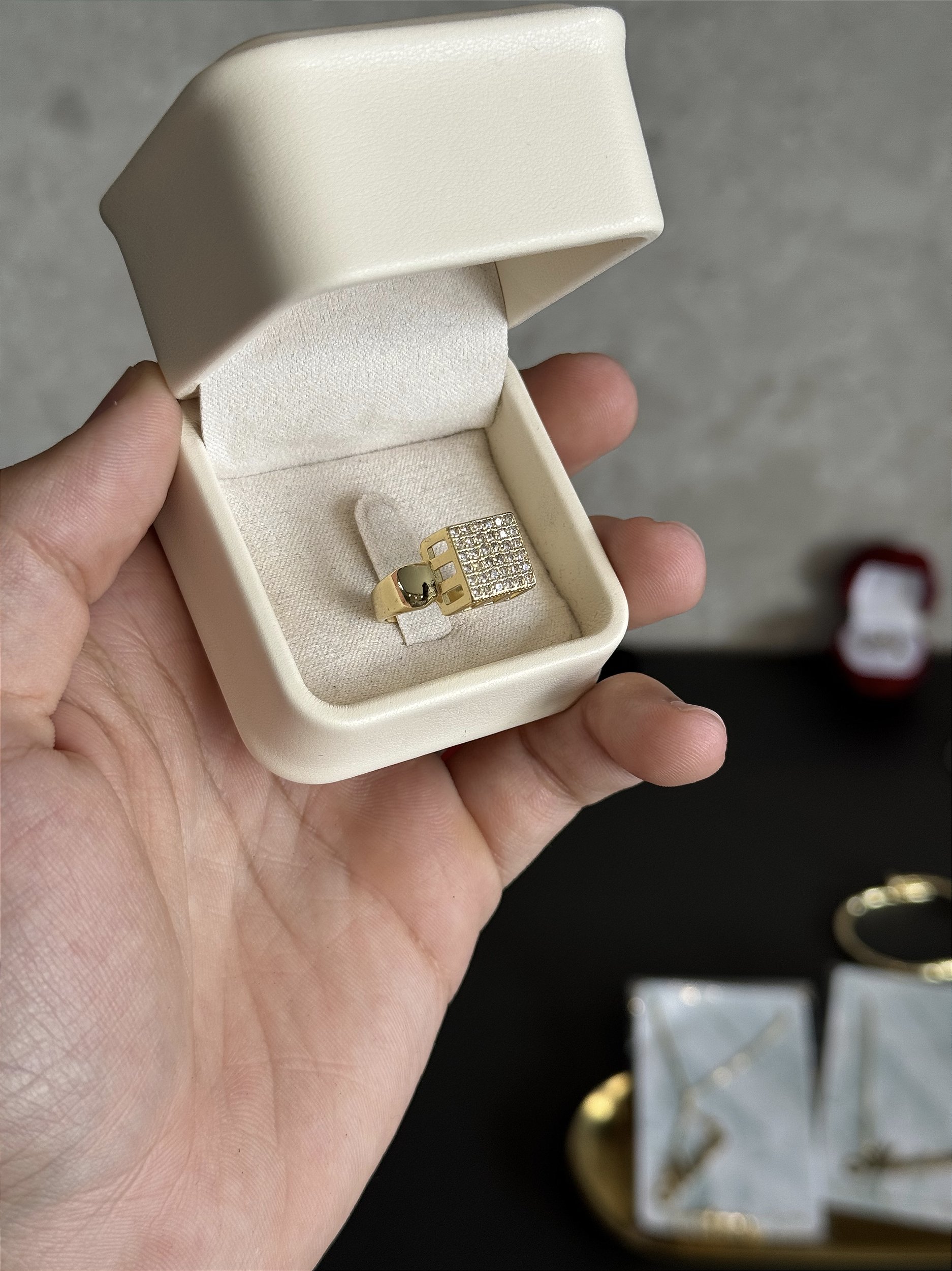 Anel Chuveiro Quadrado G - Banhado a Ouro
