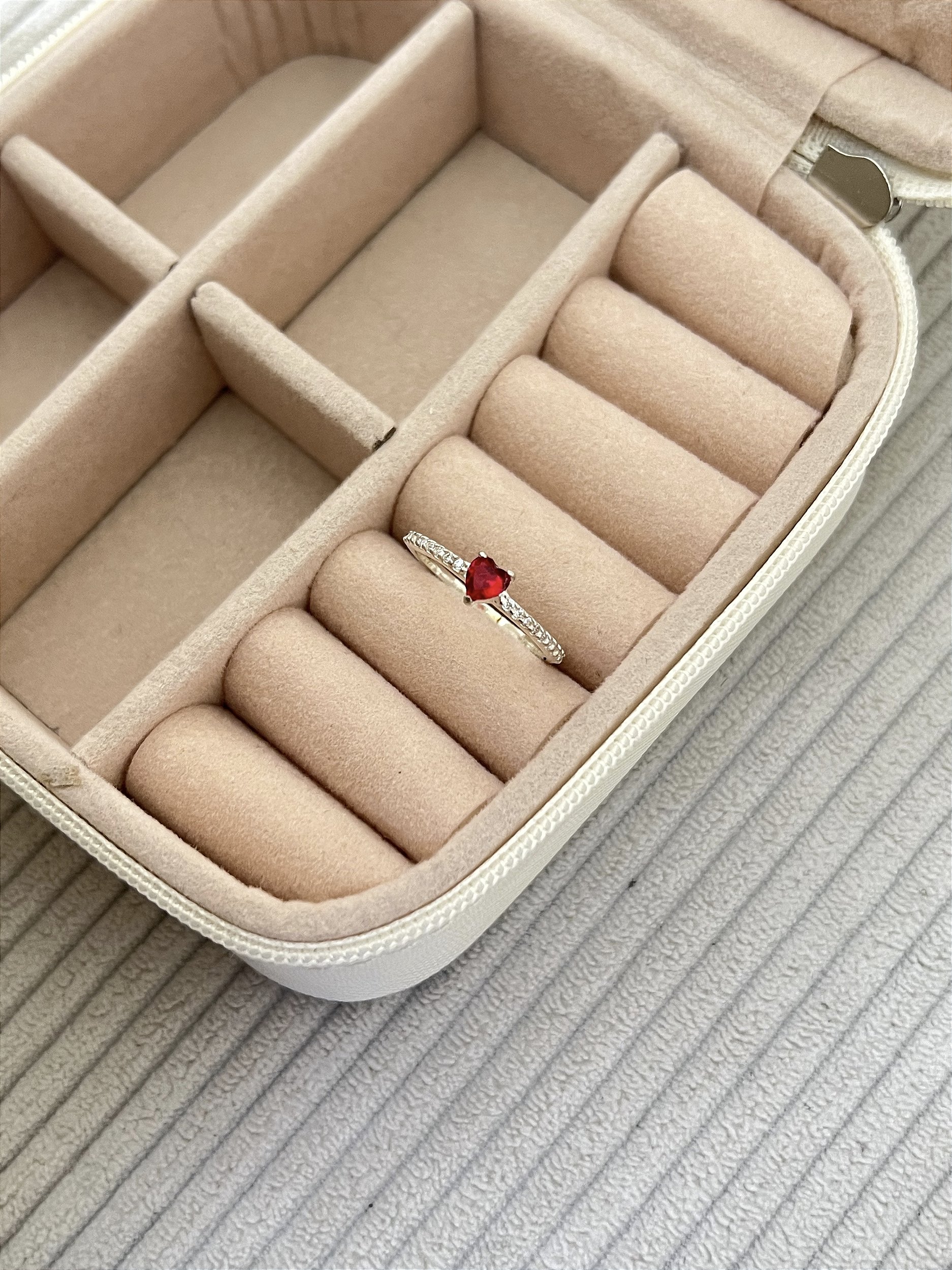 Anel Cravejado com Pedra Coração Rubi- Prata 925