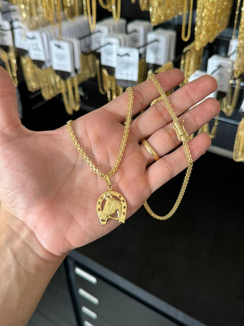 Corrente Cadeado Duplo 3,5mm 60cm + Pingente Ferradura M