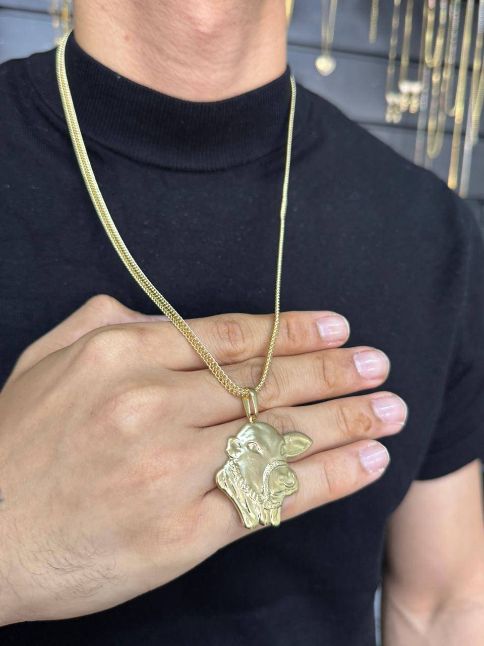 Corrente Grumet Imperador 4mm 65cm + Pingente Boi Nelore - Banhado a Ouro