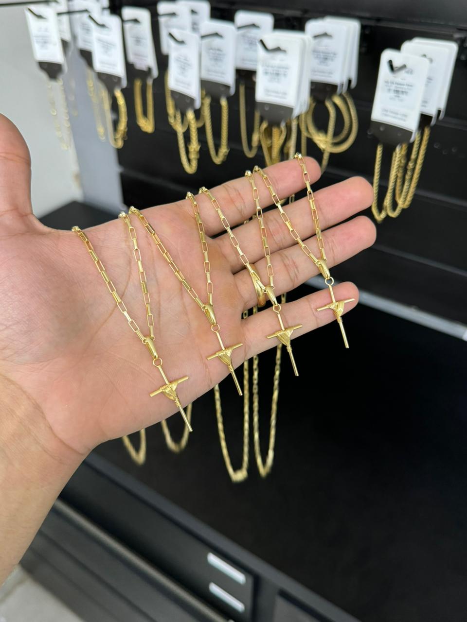Corrente Tijolinho 2,5mm 60cm + Pingente Cruz Enrolada M - Banhado a Ouro