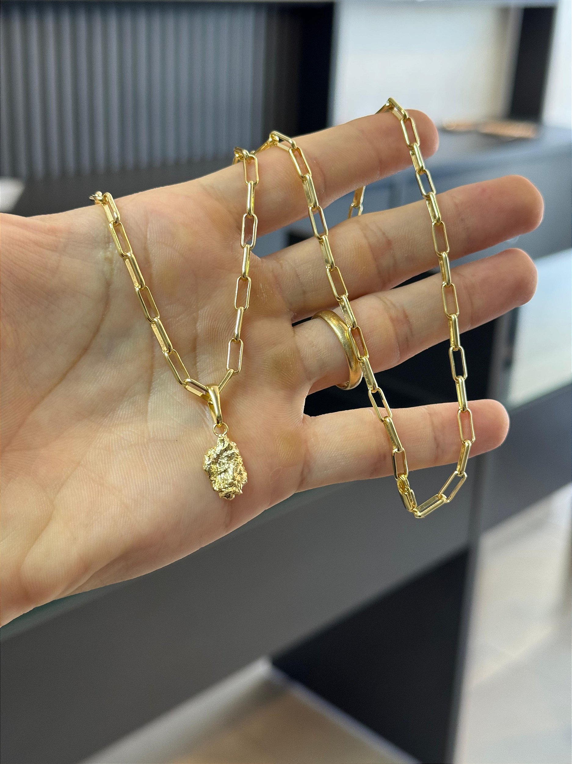 Corrente Tijolinho 3,4mm 60cm + Pingente Pepita G - Banhado a Ouro